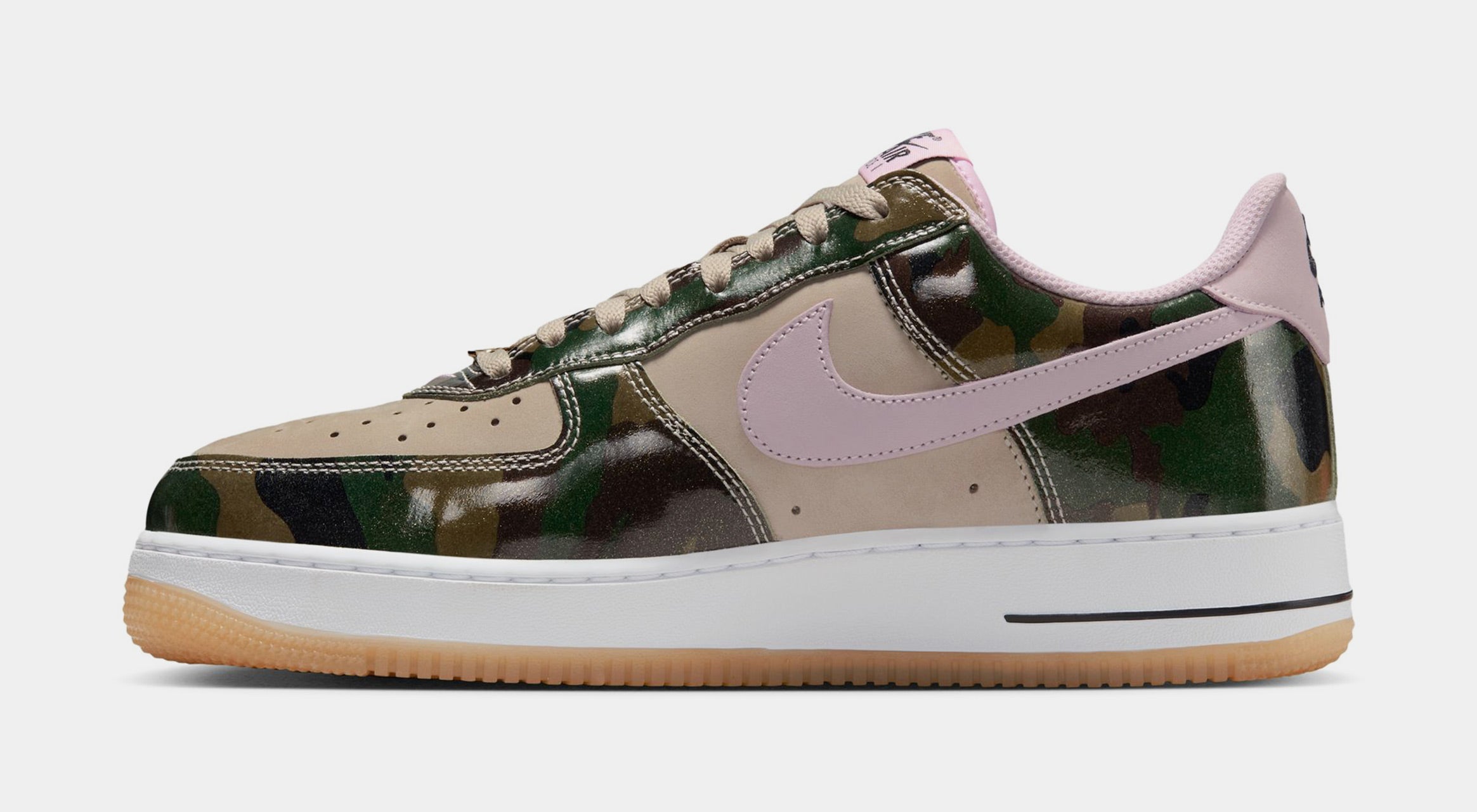 The Nike Air Force 1 Low Camo Pink Swoosh is a striking iteration of the iconic Air Force 1 silhouette, blending classic design with contemporary flair. This particular model stands out with its unique colorway that features a distinctive camouflage pattern, juxtaposed with a vibrant pink Swoosh.
