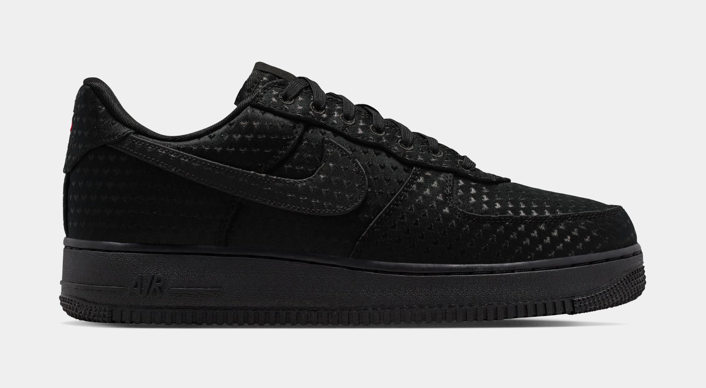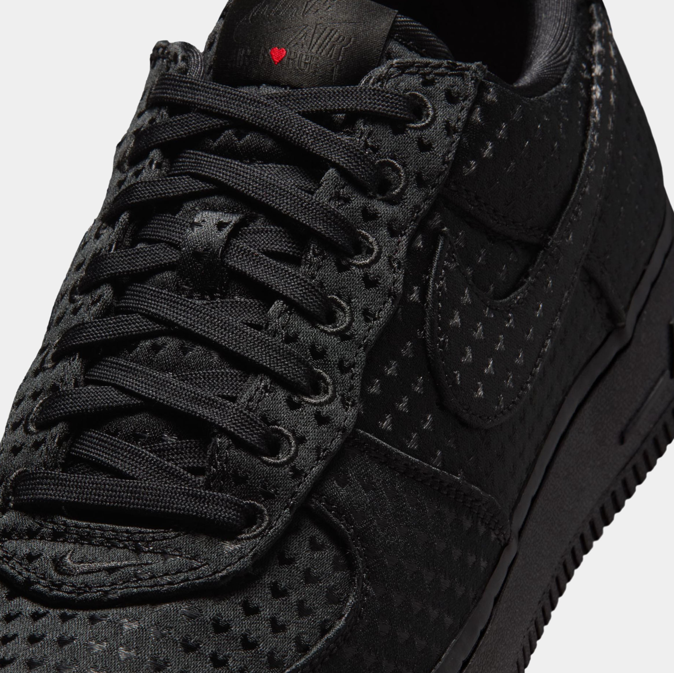 A sleek take on an iconic silhouette. Dressed entirely in black, this special-edition AF1 delivers a refined, versatile look while hiding thoughtful Valentine??s Day details throughout the design. The perforated upper adds texture and breathability, giving the shoe a premium feel that stands out without sacrificing its clean, monochromatic aesthetic.