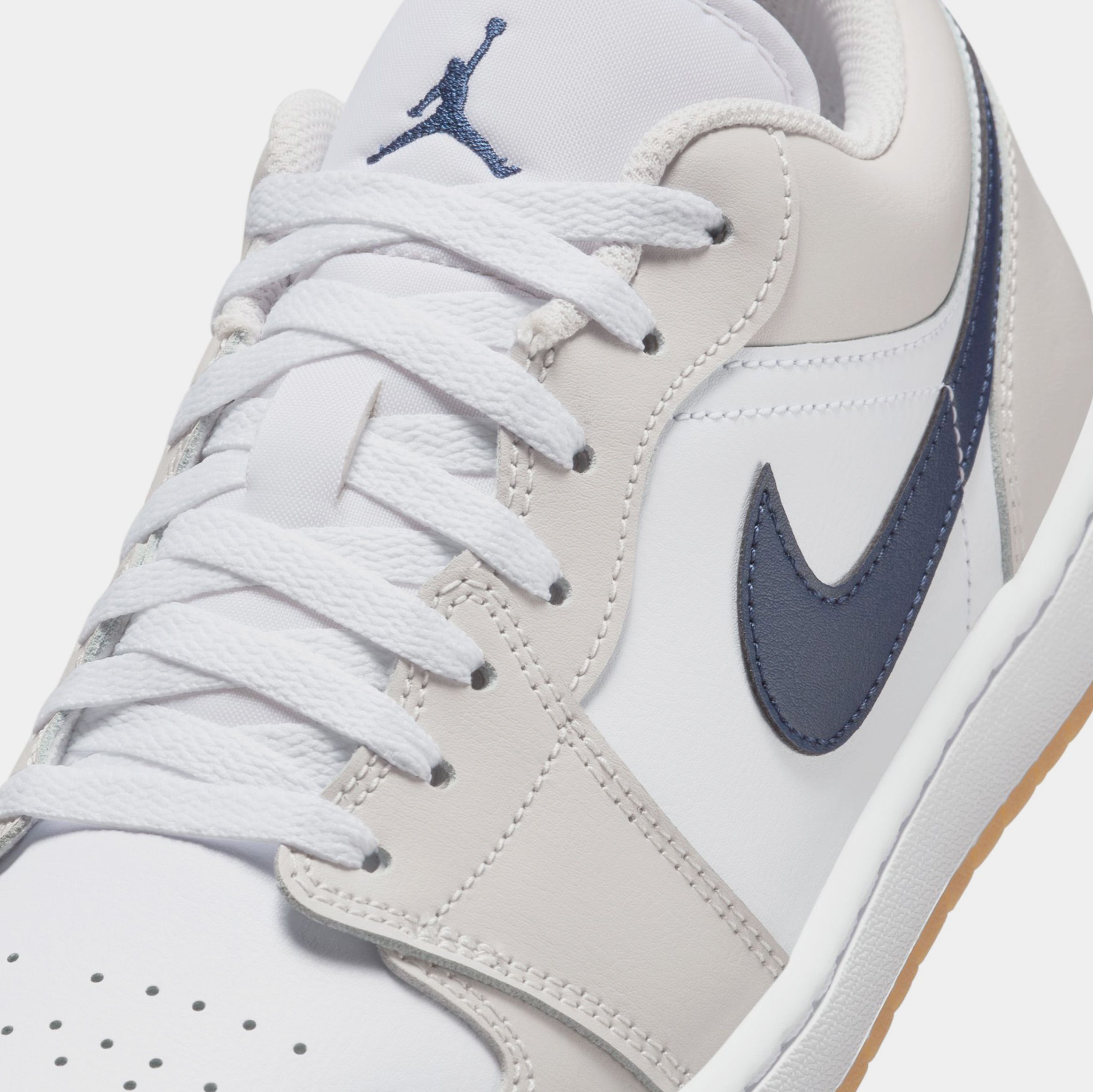 Air Jordan 1 Low Mens Lifestyle Shoes (White/Neutral Grey/Gum Medium Brown/Midnight Navy)