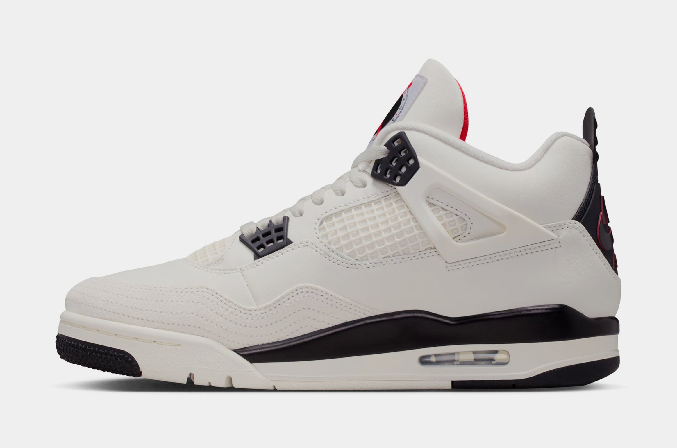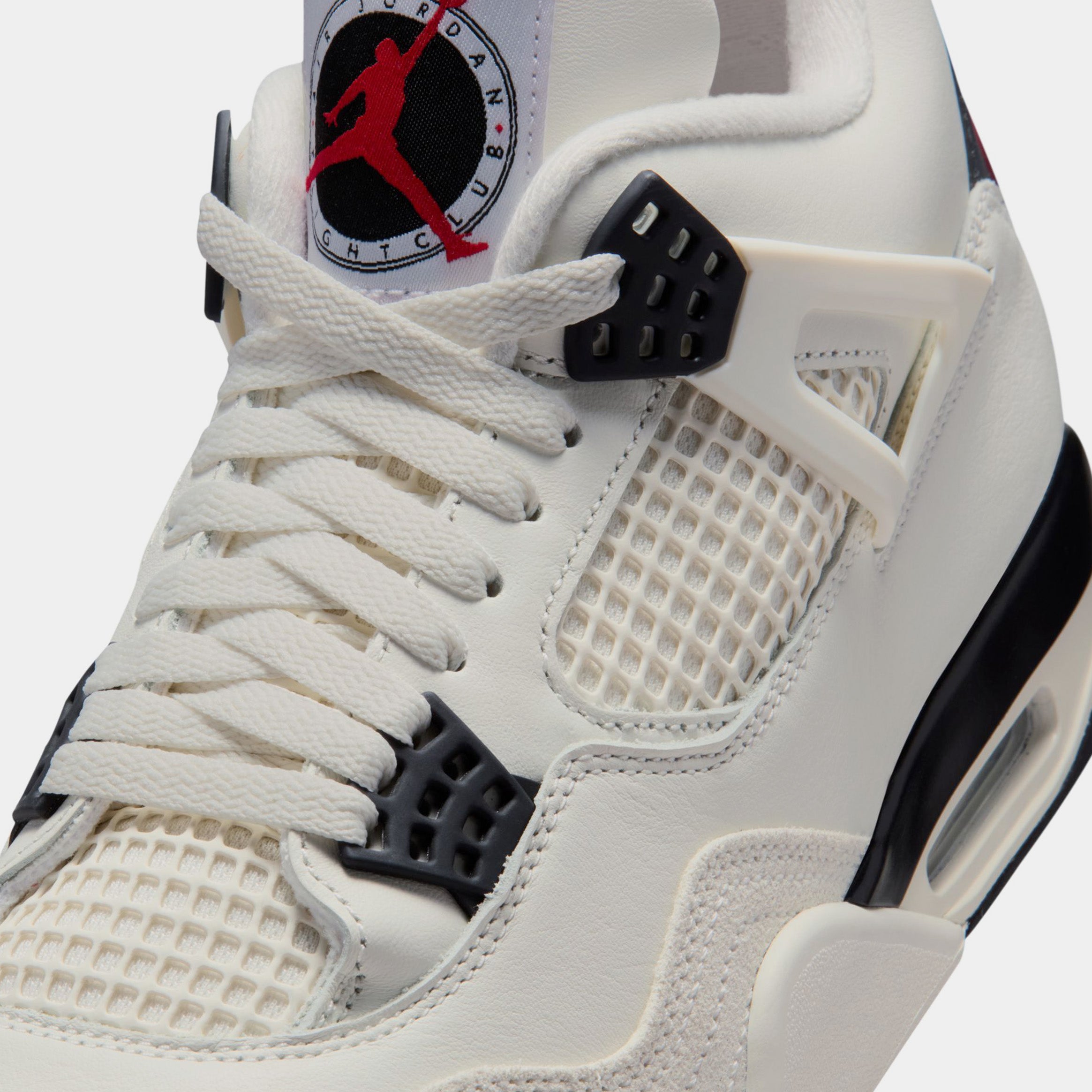 If you wanted to fly like MJ, you had to join the club. The Air Jordan Flight Club. This AJ4 honors the heritage and nostalgia of the popular mail-in membership program from the ’80s and ’90s. A smooth Sail and white leather upper features black and University Red accents, bringing more Jumpman DNA to the all-time classic. Bold “Flight Club” logos combine with Nike Air heel branding for an homage to the original era. Complete with all the iconic elements??these are your ultimate fan club flex.