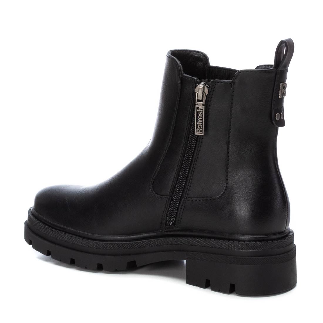 Botín de mujer, de la marca Refresh. Fabricado en un material que imita la piel. Cierre cremallera lateral. Botín tipo Chelsea con elástico lateral y tirador trasero para facilitar la puesta. Suela de volumen antideslizante. Este modelo ha obtenido el certificado vegano por la organización mundial PETA (Organización de los derechos de los animales).