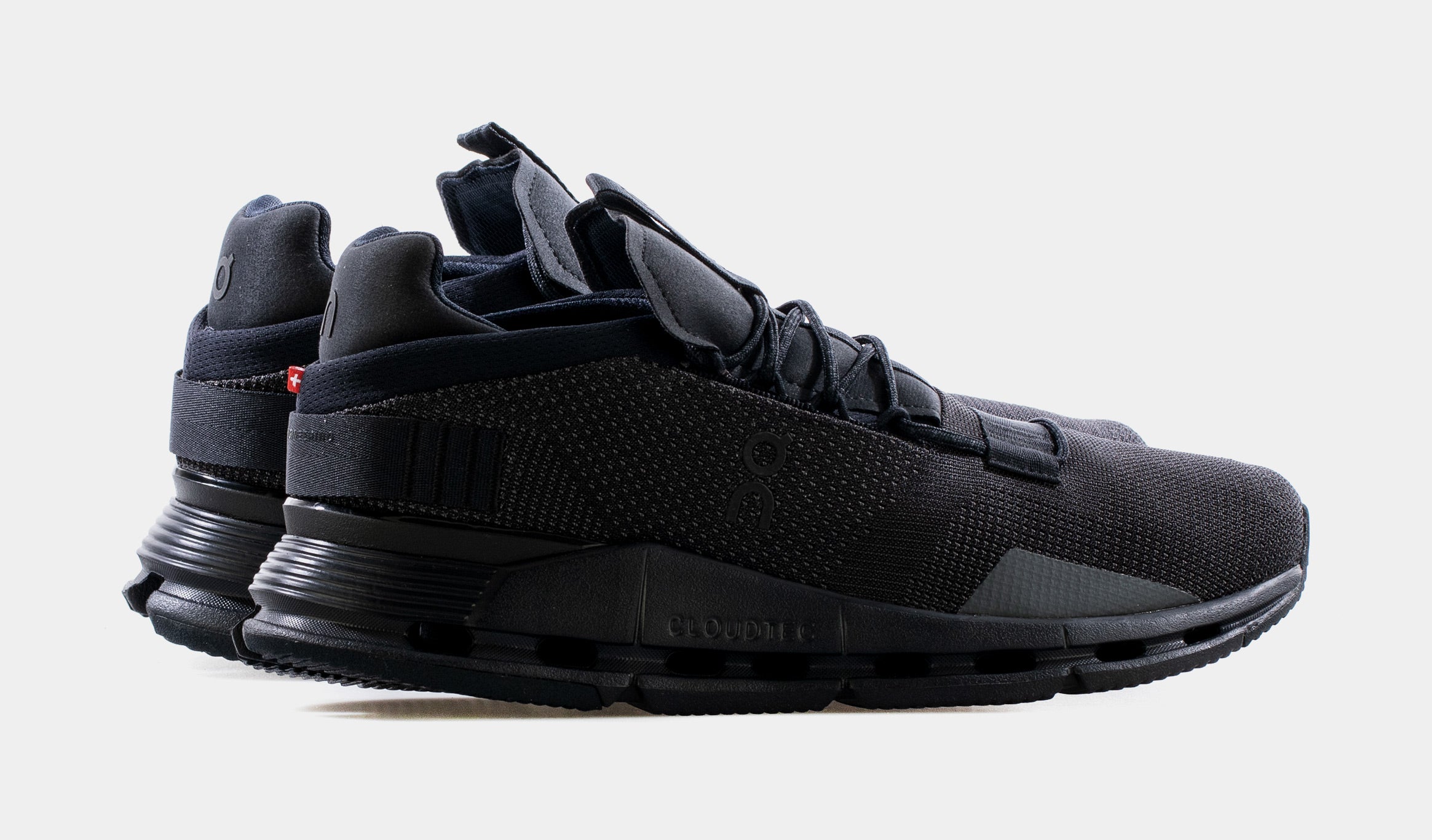 The On Running Cloudnova running shoe combines technology and style to create the perfect running shoe. Featuring a black on black colorway, CloudTec technology that cushions impact, Speedboard technology that propels you forward, durable rubber reinforcements, superior step-in feel with teh heel tongue and sock construction, padded heel, and enhanced build for bend and flex to complete the look.