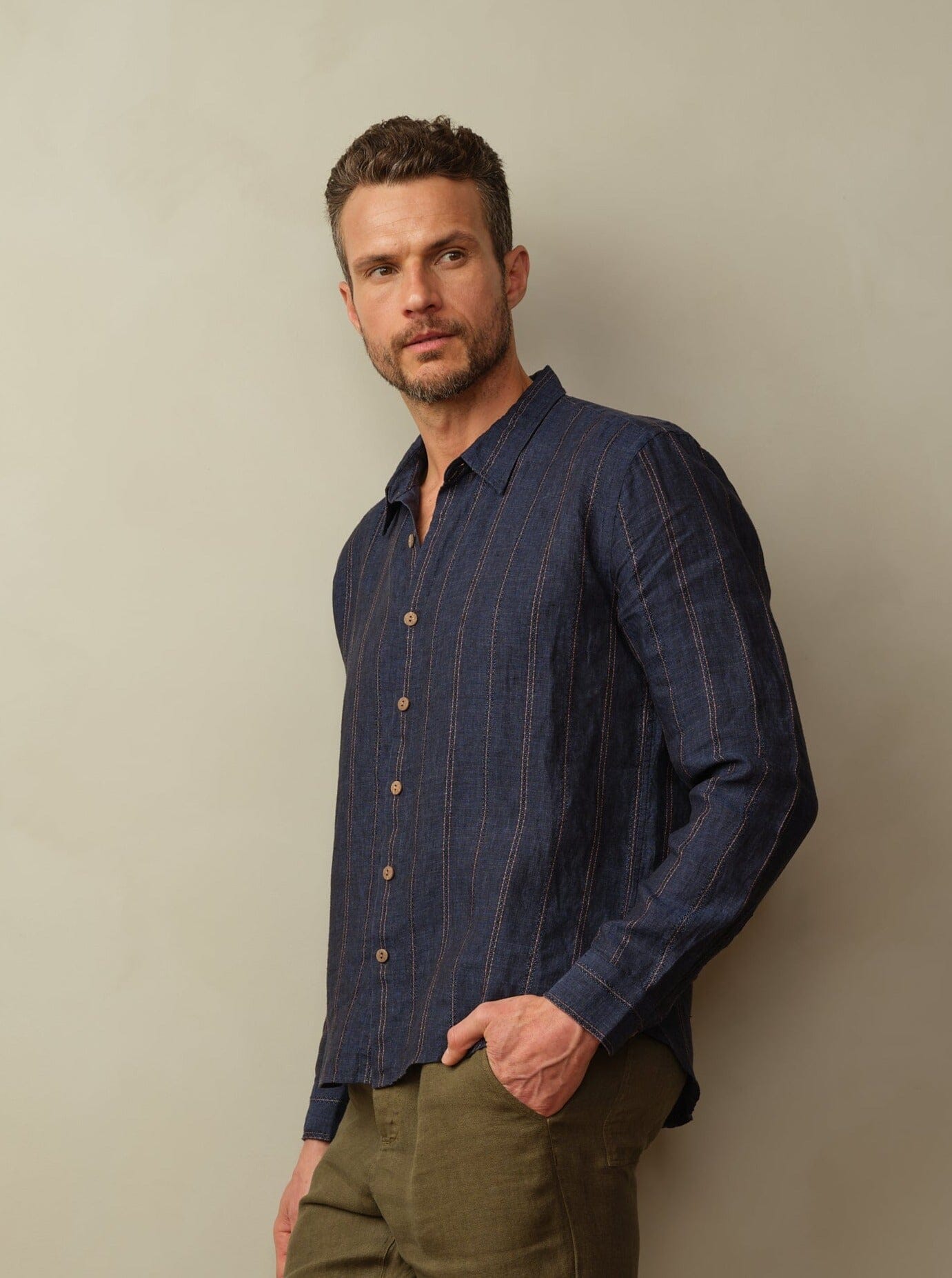 Our best-selling Accord button-down shirt, crafted from garment-dyed 100% European Flax linen. Lightweight, breathable, and finished with natural coconut shell buttons for a timeless, elevated look.
