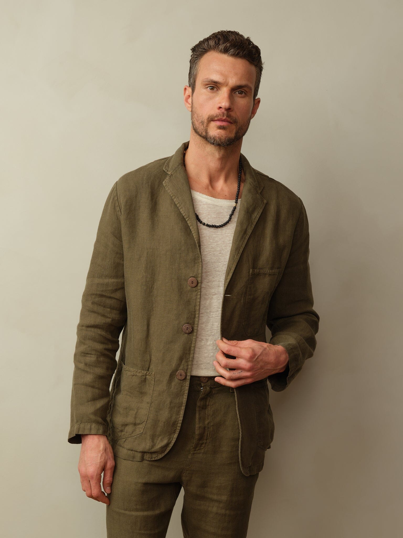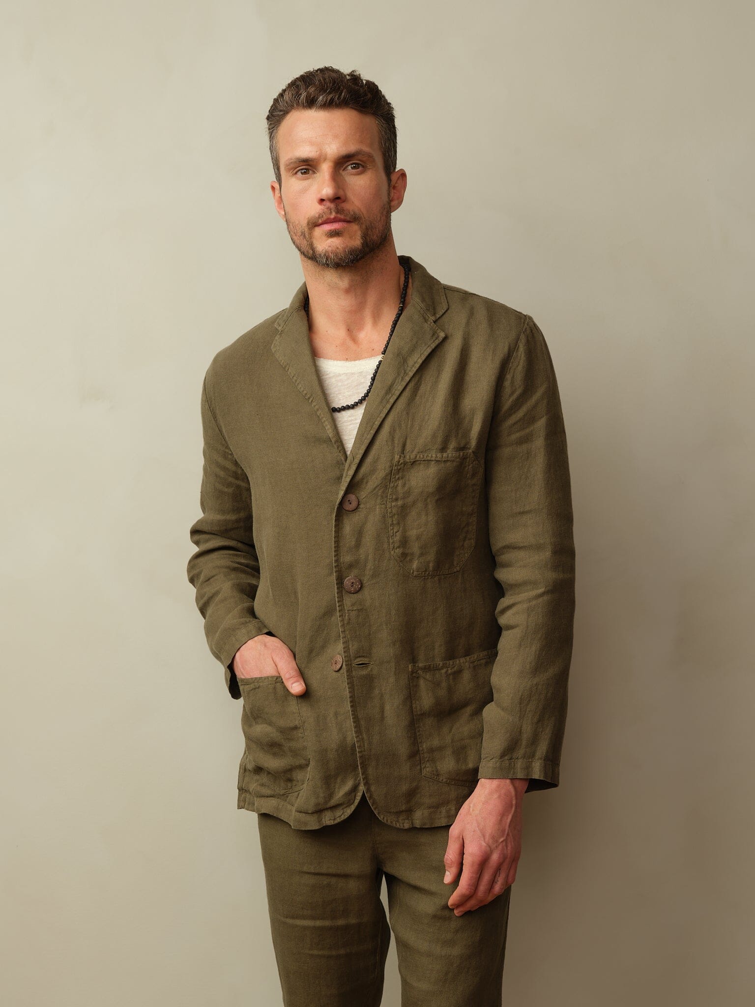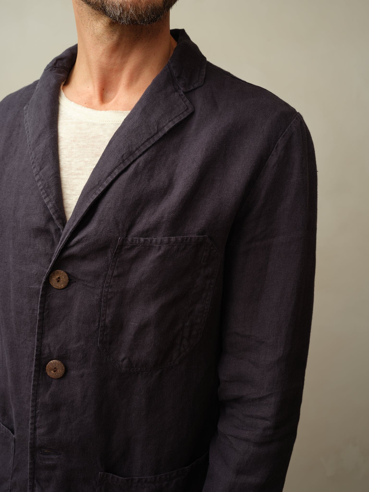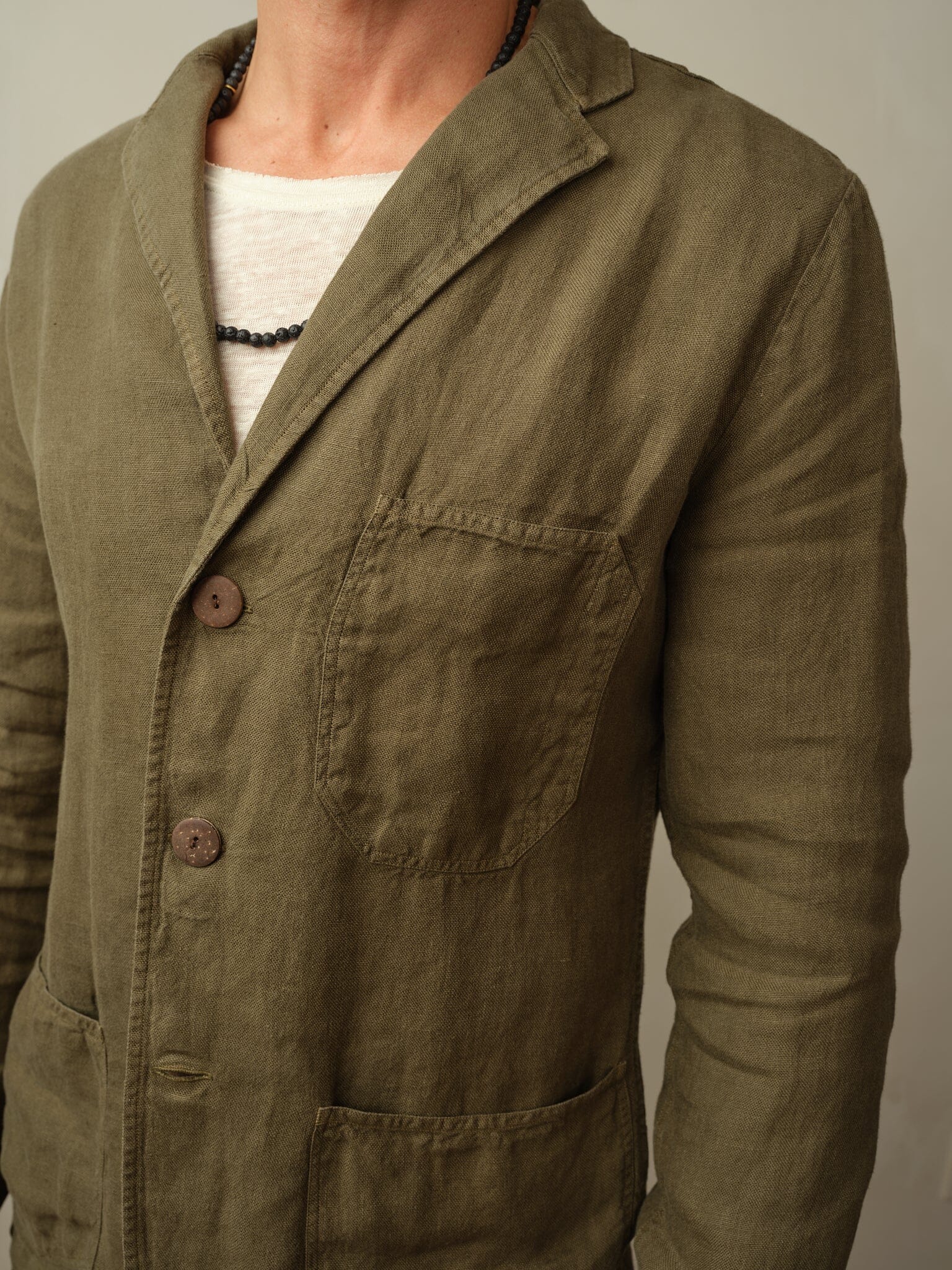 - Material: 100% European Flax Linen. Coconut shell buttons.