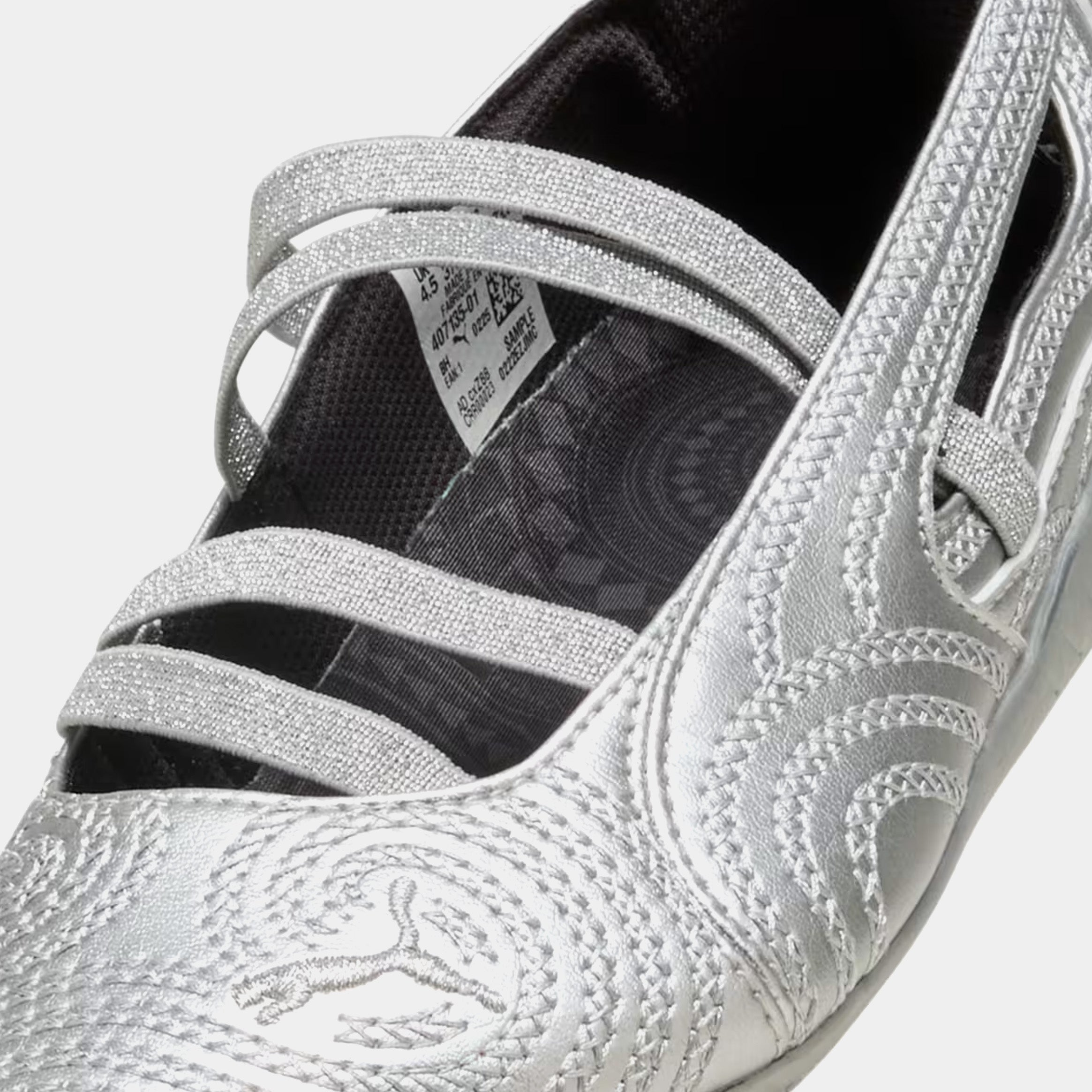 silver outsole and bold embroidery to bring a bit of sparkle to any look.