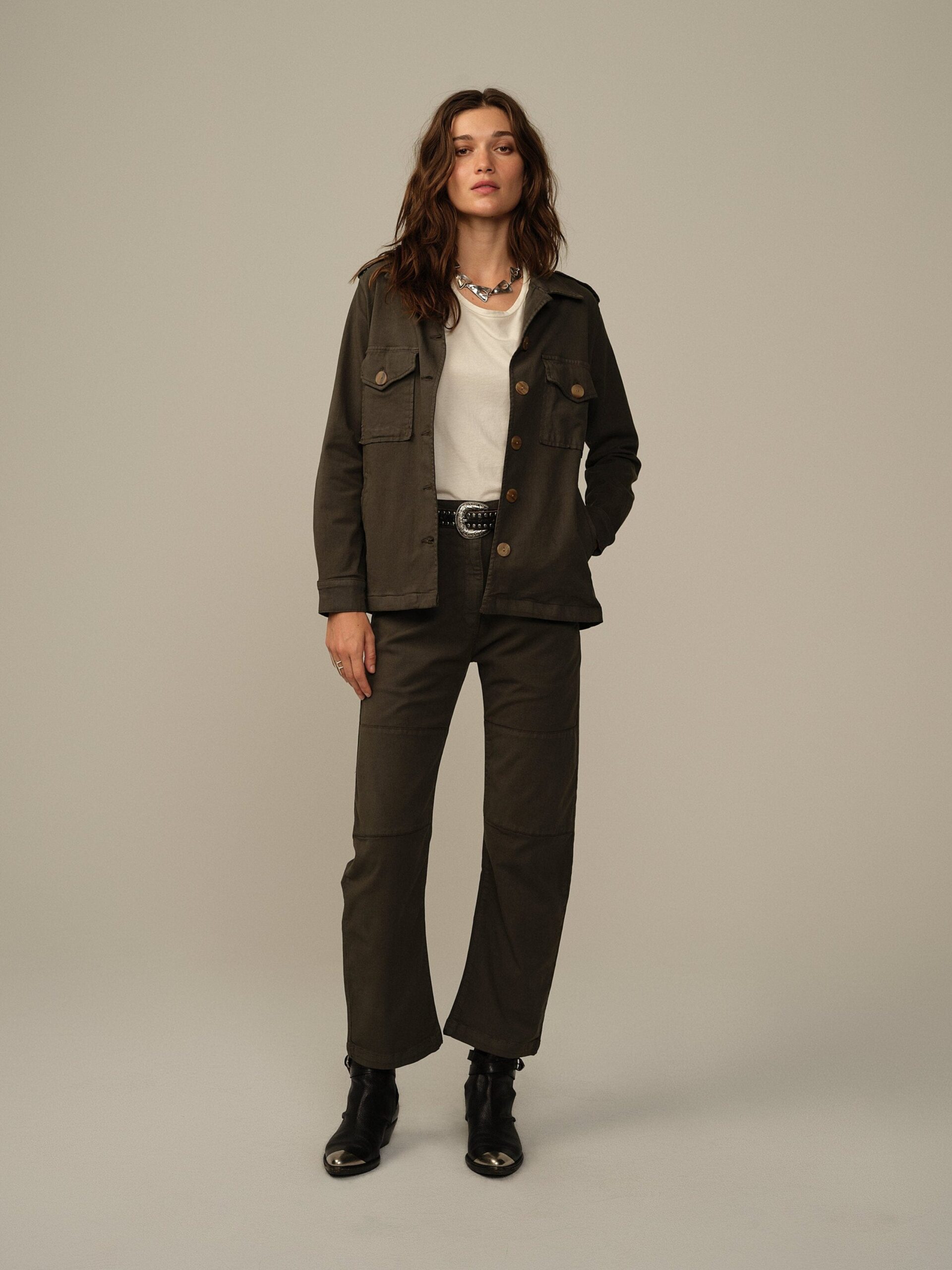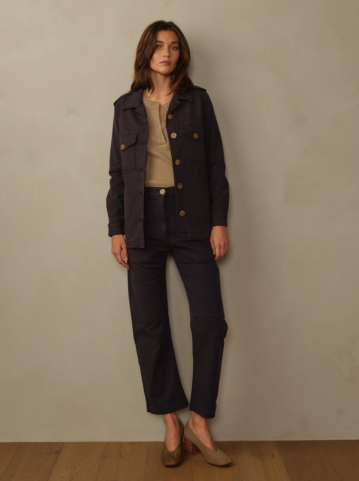 - Material: 63.3% Organic Cotton, 32.4% Cupro, 4.3% Spandex. Biodegradable buttons made from casein and plant protein