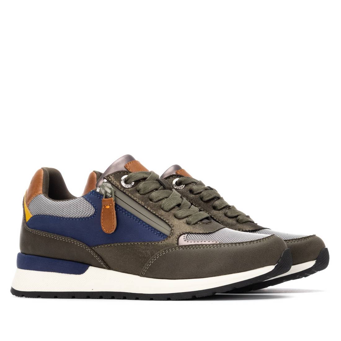 Zapatilla de mujer, de la marca Refresh. Fabricada en material que imita a la piel combinada con rejilla. Cierre mediante cremallera lateral. Cordones regulables al tono. Suela de goma antideslizante. Con plantilla extraíble. Este modelo ha obtenido el certificado vegano por la organización mundial PETA (Organización de los derechos de los animales).