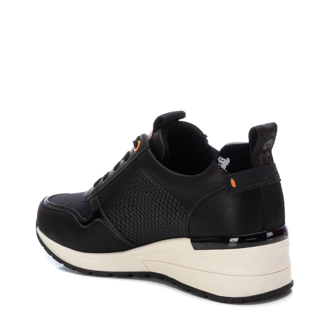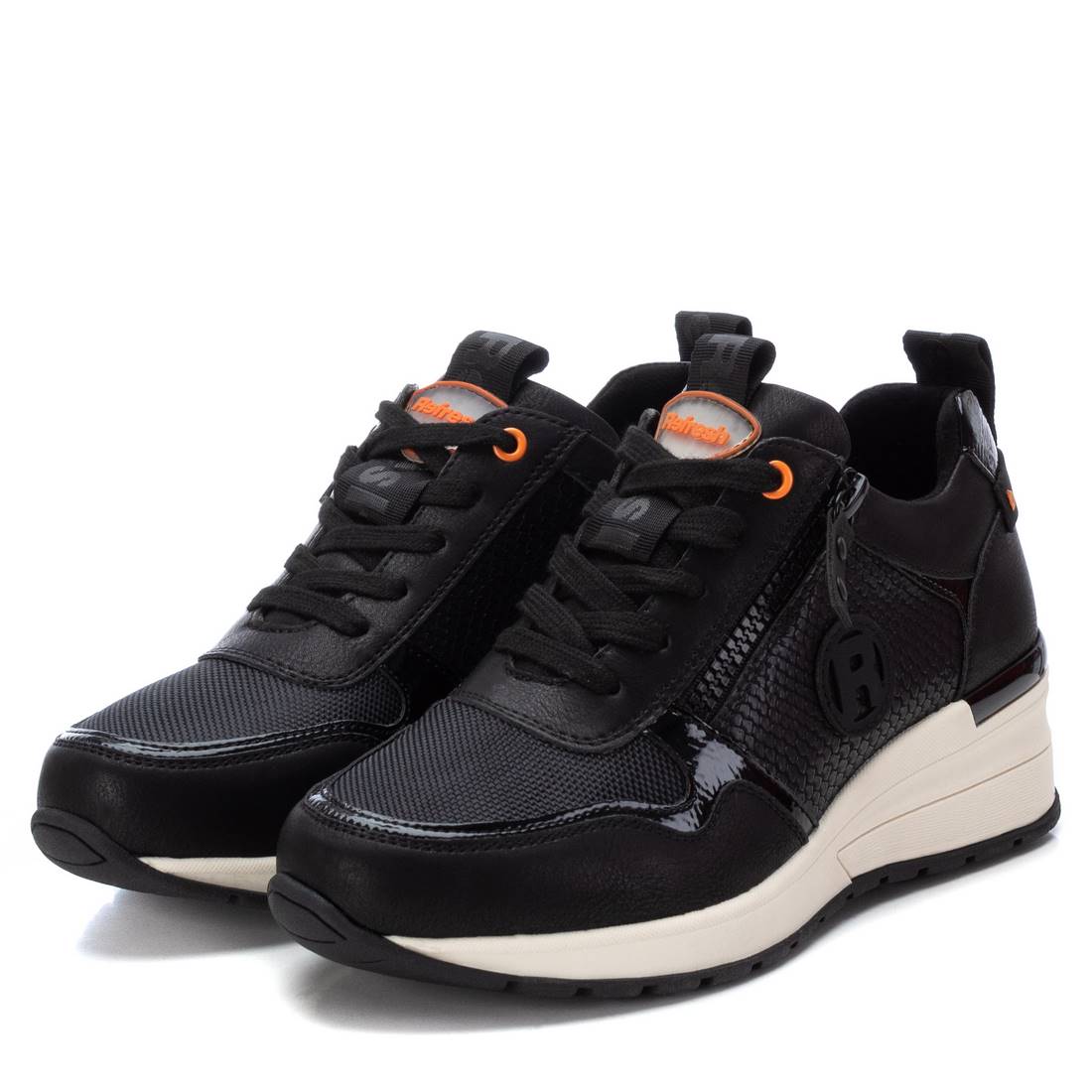 Zapatilla de mujer, de la marca Refresh. Fabricada en material que imita la piel. Cierre mediante cremallera lateral y cordones ajustables. Tirador trasero para facilitar la puesta. Cuña de 5 cm que te permitirá subir unos centímetros sin perder comodidad. Suela de goma antideslizante. Este modelo ha obtenido el certificado vegano por la organización mundial PETA (Organización de los derechos de los animales).