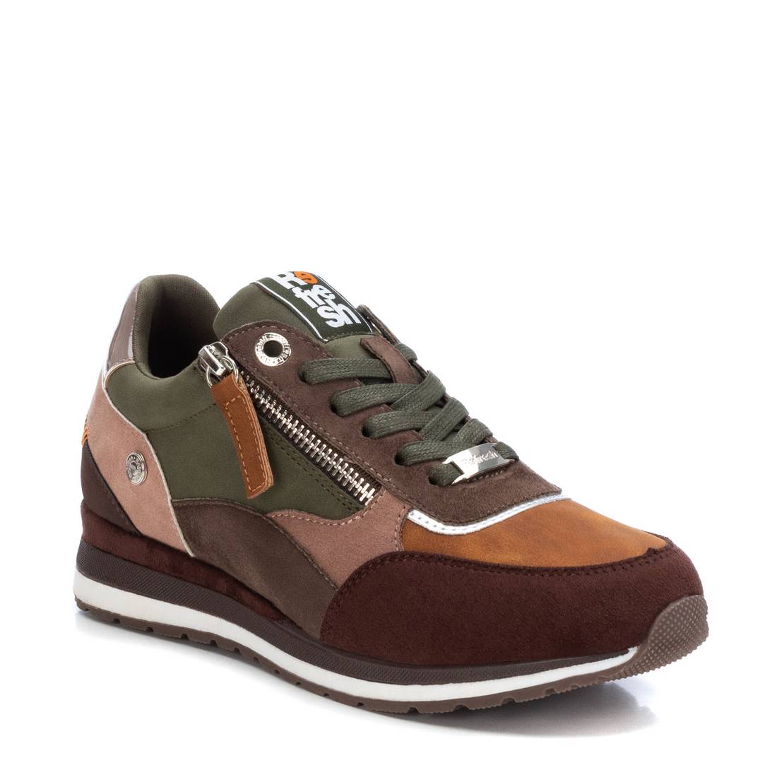 Zapatilla de mujer, de la marca Refresh. Fabricada en antelina. Cierre mediante cremallera lateral y cordones ajustables. Suela de goma antideslizante. Este modelo ha obtenido el certificado vegano por la organización mundial PETA (Organización de los derechos de los animales).